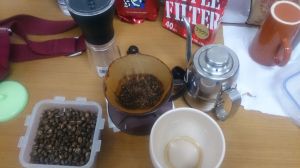 Kopi… Ah rasanya aku nggak akan bisa berhenti kalo ngomongin tentang kopi. Sukaaaa banget. Nggak ada bosannya. Jangan memancingku bicara tentang kopi jika kamu tidak tahu bagaimana caranya menghentikan bibirku ini bertutur tentang kopi. Dan manakala aku bertemu dengan teman yang memiliki hobi yang sama, berbinar-binar penuh antusias mata ini, berharap bisa berbagi cerita sama dia. Berharap dia nggak akan bosan diajak ngobrol tentang kopi. Jujur saja, orang yang menyukai kopi sebagaimana diriku menyukai kopi, masih terbilang langka. Jadi wajar dong kalo aku begitu suka cita menemukan orang semacam itu.